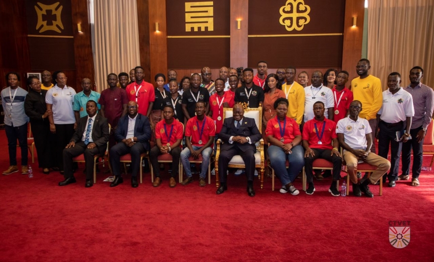 The leadership of CTVET and the Ministry of Education have presented winners from the WorldSkills Africa Competition, Swakopmund 2022 to H.E. Nana Addo Dankwah Akufo Addo at the seat of government Jubilee House on Tuesday 14th June, 2022.