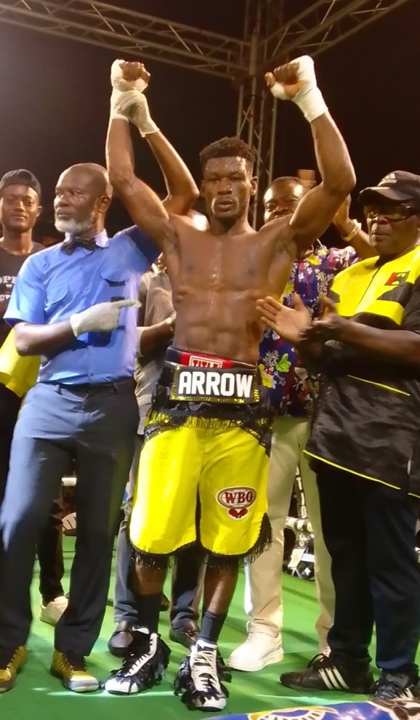 The Idrowhyt Events Centre was the venue and other bouts on the night had Emmanuel Quaye handing veteran Frank Dodzie a round 2 TKO, retaining his national title and annexing the WABU super welterweight version to add.