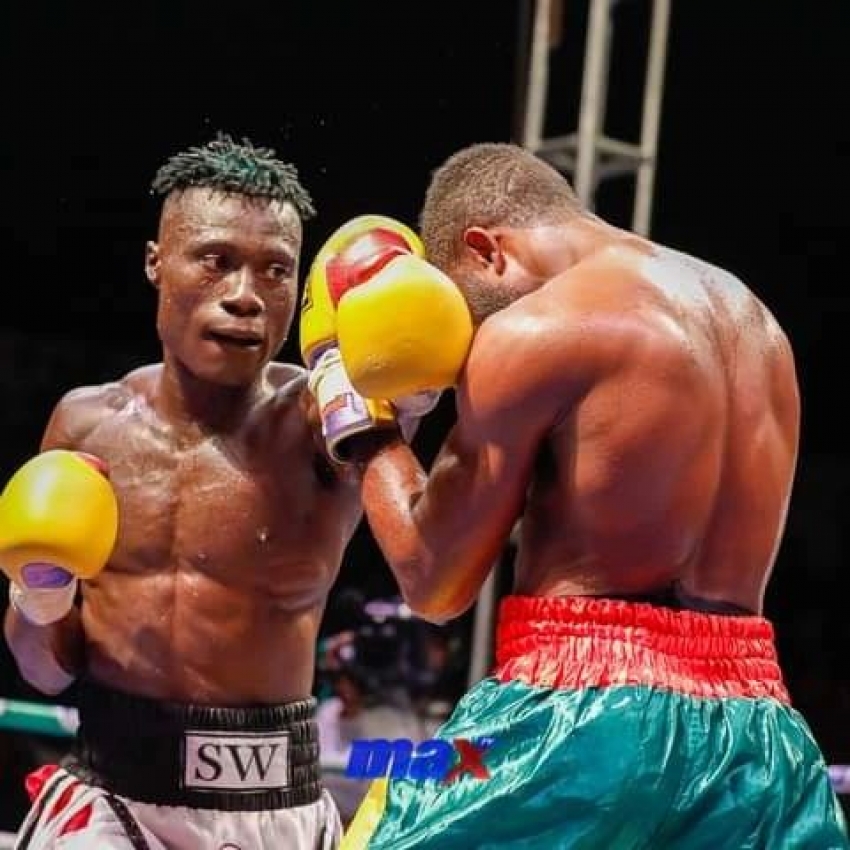 Ace lightweight boxer and fashion designer, Gabby Coffie aka ‘Apetor’ featured against Kevin Jerome one of the foreign boxers and taught him many lessons before stopping him.
