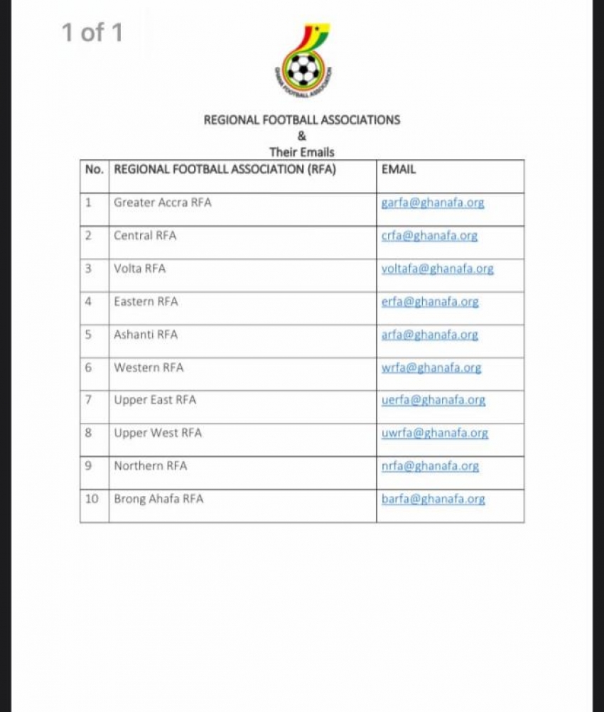 Kindly find attached the Email address of all the ten Regional Football Associations.