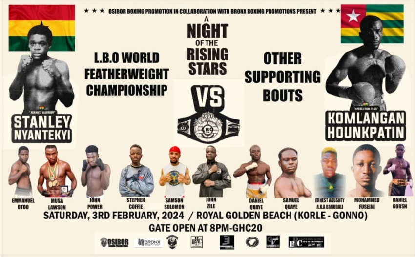 Osebor Boxing Management and Bronx Boxing Promotions present 'Night of Rising Stars’ featuring Stanley 'Ashanti Warrior' Nyantekyi against Komlangan Hounkpatin of Togo.