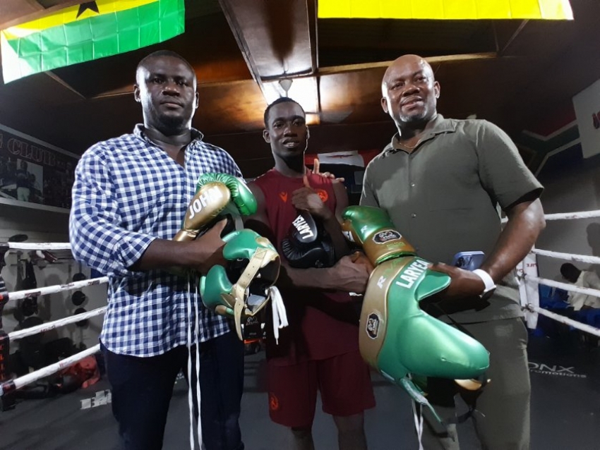 WBO Africa Featherweight Champion, John Abaja Laryea has received special branded boxing equipment from his mamagement team at an impressive ceremony at the Bronx Gym on Thursday.