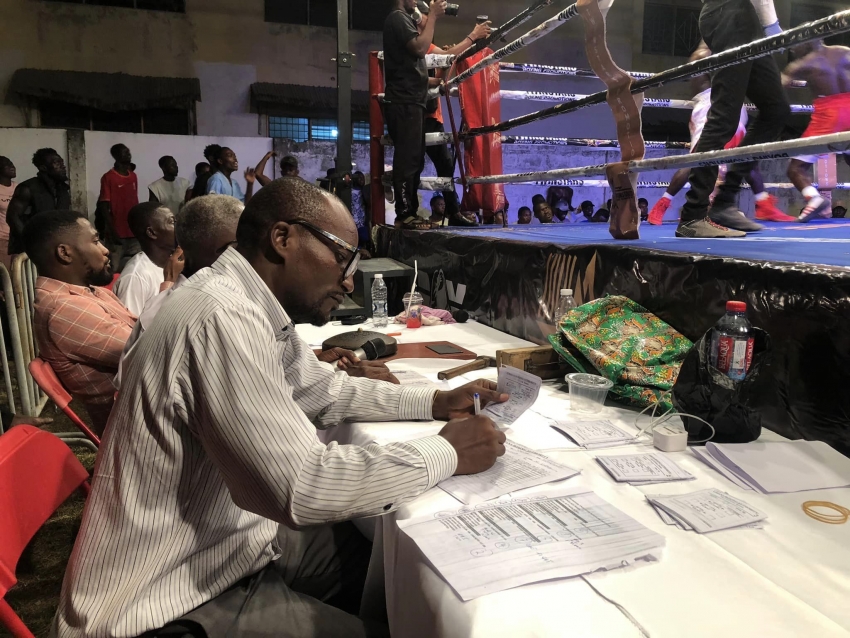 Derek Nii Asai Ankrah was at the DVLA-SCC at Weija on Saturday March 30, 2024 to play his roll as master score master of the Ghana Boxing Authority GBA following the sudden demise of ace veteran historian, the legendary Mr. J. A. Annan.